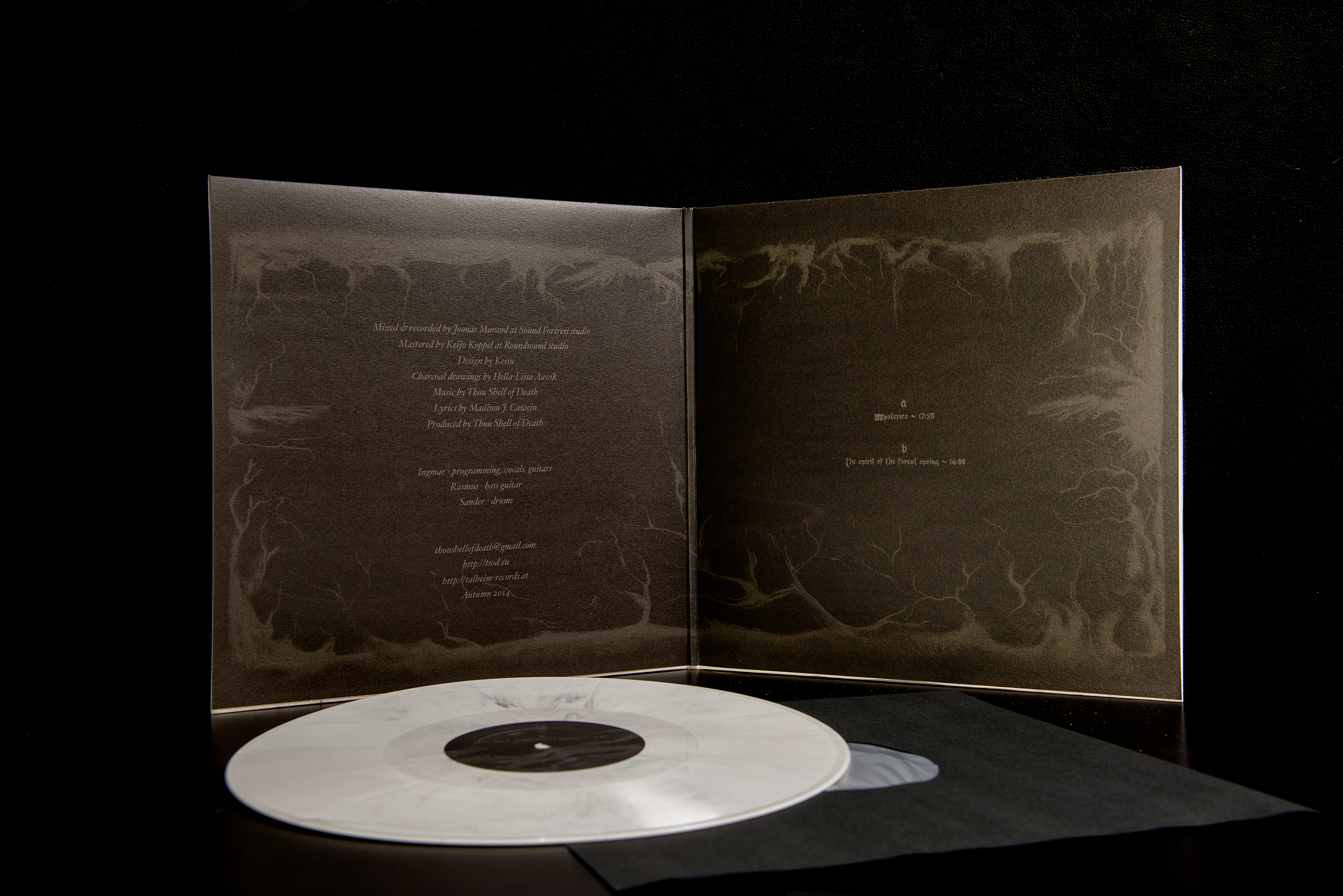 EP der atmosphärischen Black Metal Band Thou Shell Of Death aus Estland. Erhältlich als Gatefold aus rauem Papier. Limitiert auf 100 weiße schwarz marmorierte Stück. Titelliste: Seite A:01. Mysteries Seite B:02. The Spirit Of The Forest Spring Thou Shell Of Death - The Spirit Of The Forest Spring